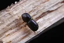 Euwallacea fornicatus is a species complex consisting of multiple cryptic species of ambrosia beetles (Coleoptera: Curculionidae: Scolytinae: Xyleborini), known as an invasive species in California, Israel and South Africa.[1] As the rest of the ambrosia beetles, E. fornicatus larvae and adults feed on a symbiotic fungus carried in a specific structure called mycangium. In E. fornicatus, the mycangium is located in the mandible. The combination of massive numbers of beetles with the symbiotic fungus kill trees, even though the fungus alone is a weak pathogen.[2]