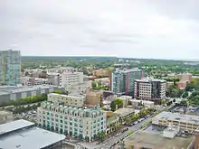 ![]() View of downtown, at Sherman Avenue and Davis Street, looking south/south-east toward Chicago. | |