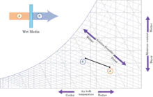 For direct evaporative cooling, the direct saturation efficiency, , measures in what extent the temperature of the air leaving the direct evaporative cooler is close to the wet-bulb temperature of the entering air. The direct saturation efficiency can be determined as follows:[31]