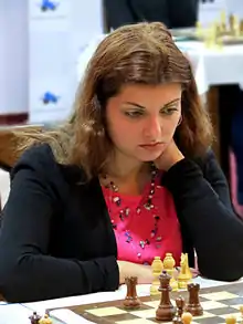 Evgeniya Grigorivna Doluhanova (Ukrainian: Євгенія Григорівна Долуханова; born 10 June 1984) is a Ukrainian chess player who holds the FIDE title of Woman Grandmaster (WGM, 2006). From 2011 to 2013 represented Armenia.[1][2]