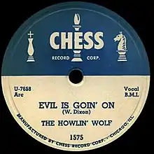 "Evil", sometimes listed as "Evil (Is Going On)", is a Chicago blues song written by Willie Dixon.[1] Howlin' Wolf recorded the song in Chicago for Chess Records in 1954.[2] It was included on the 1959 compilation album Moanin' in the Moonlight. When he re-recorded it for The Howlin' Wolf Album in 1969, "Evil" became Wolf's last charting single, reaching number 43 Billboard R&B chart.[3]