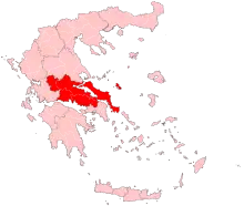 Evrytania is a constituency[2] in Central Greece represented in the Hellenic Parliament. This constituency corresponds to Evrytania prefecture. It elects one Member of Parliament (MP) by the Reinforced proportional representation system of election.