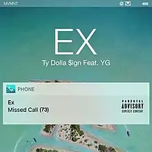 "Ex" is a song by American singer Ty Dolla Sign, released on October 6, 2017. It is the third single from his second studio album Beach House 3 (2017) and features American rapper YG.[1] The song samples the remix of "Only You" by 112.[2]