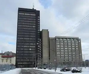 The Executive Plaza Building is a two-tower office building that was constructed between 1967 and 1975 in Detroit, Michigan, United States. The taller building stands 22 stories high on a lot bounded by Sixth Street, Howard, Abbott and the John C. Lodge Freeway. The address is 1200 Sixth Street.