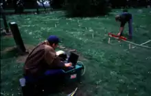 A pit was then dug in an adjacent plot, to a depth of around 1.8 metres (6 ft), and a vertical ground conductivity test was conducted from within the pit. This test failed to detect the anomaly recorded in the surface test, however the conductivity plot did show an anomaly at the centre of the grave, indicating that the grave was dug to its full depth of 2.7 metres (9 ft) only at its centre. This suggested the burial of a small box, confirming the memory of the grave digger who claimed to have constructed a small box to house the buried remains.[3][4]