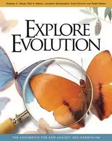 Explore Evolution: The Arguments For and Against Neo-Darwinism is a controversial biology textbook written by a group of intelligent design supporters and published in 2007.[1] Its promoters describe it as aimed at helping educators and students to discuss "the controversial aspects of evolutionary theory that are discussed openly in scientific books and journals but which are not widely reported in textbooks."[2][3] As one of the Discovery Institute intelligent design campaigns to "teach the controversy" its evident purpose is to provide a "lawsuit-proof" way of attacking evolution and promoting pseudoscientific creationism without being explicit.