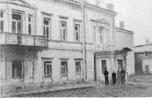 As a result of the explosion, the house was badly damaged, especially its back. The façade and the main staircase suffered relatively little damage. All the windows were smashed in front, frames and doors were torn in places. In the floor of the room, a bomb struck a large hole about three meters in diameter. The force of the explosion was such that two thick beams were broken in the floor. The entire rear of the building collapsed into the garden, and the iron roof that had been demolished by the explosion fell there.[1]