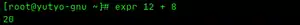 expr evaluates integer or string expressions, including pattern matching regular expressions. Each symbol (operator, value, etc.) in the expression must be given as a separate parameter. Most of the challenge posed in writing expressions is preventing the invoking command line shell from acting on characters intended for expr to process.