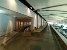 Plans were announced for the McNamara Terminal in 1996 by Wayne County and Northwest Airlines, who operated their largest hub in Detroit at the time.[1] The NcNamara Terminal was designed to accommodate Northwest's hub operation, which was previously housed in the airport's Davey Terminal. As part of the design, a people mover on the upper level of Concourse A was planned to help transport passengers quickly thorough the 4,900 foot concourse. The people mover, which was eventually named ExpressTram, was the world's first airport people mover top operate on the inside of a terminal building, and not outdoors or in tunnels like other airports.[2]