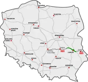 - Puławy-Lublin-Piaski section, part of it co-signed with expressway S17, includes the road bypass around Lublin