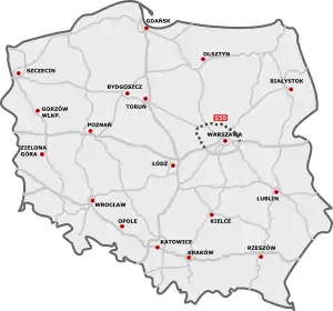 The S50 expressway is a planned expressway in Poland, in Masovian Voivodeship. It will run as a circle road north to the Warsaw metropolitan area to take over the transit traffic from the existing expressway ring around the city, mainly from the S8 and S17 expressways, as well as will be one of the road connectors to the planned Solidarity Transport Hub.[1] It was added to the motorway and expressway index by Polish government on 24 September 2019.[2] Expected completion of the road, along with parallel A50 motorway is set on 2027.[3]