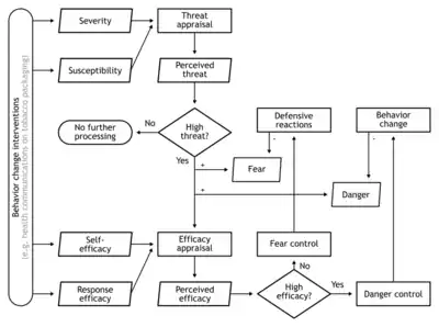 The EPPM was developed by Witte as a response to the significant inconsistencies in fear appeal literature, serving as an extension of previous fear appeal models, hence the use of 'extended' in name 'EPPM'. The model is originally based on Leventhal's Parallel Process Model – a danger and fear control framework that studied how adaptive protective behaviour stemmed from attempts of danger control.[3] It also significantly draws from Roger's Protection motivation theory, which proposes two responses to fear-inducing stimuli: threat appraisal and coping appraisal.