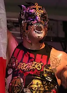 On August 28, 2015, Fénix made his debut for Pro Wrestling Guerrilla (PWG) by entering the 2015 Battle of Los Angeles tournament, losing to Matt Sydal in his first round match.[76] On September 4, Fénix made his debut for another American promotion, Chikara, when he, Aero Star and Drago entered the 2015 King of Trios tournament as "Team AAA". They defeated the Gentleman's Club (Chuck Taylor, Drew Gulak and The Swamp Monster) in their first round match.[77] The following day, Team AAA defeated the Nightmare Warriors (Frightmare, Hallowicked and Silver Ant) to advance to the semifinals of the tournament.[77] On September 6, Team AAA first defeated reigning King of Trios winners, the Devastation Corporation (Blaster McMassive, Flex Rumblecrunch and Max Smashmaster), in the semifinals and then Bullet Club (A.J. Styles and The Young Bucks [Matt Jackson and Nick Jackson]) in the finals to win the 2015 King of Trios.[77] On May 6, 2016, Fénix made his debut for AAW: Professional Wrestling Redefined, losing to Pentagón Jr.[78] In July 2016, it was reported that Fénix had moved to San Diego in order to start working full-time in the United States.[79] On September 2, Fénix returned to PWG, entering the 2016 Battle of Los Angeles, from which he was eliminated in the first round by Will Ospreay.[80] Two days later, Fénix and Pentagón Jr. unsuccessfully challenged The Young Bucks for the PWG World Tag Team Championship.[81] On October 12, Fénix defeated Jeff Cobb, Jonathan Gresham and Sonjay Dutt at Lucha Ilimitado's inaugural event to become the first-ever Corazón de Oro Champion.[82] On March 18, 2017, Fénix and Penta el Zero M defeated The Young Bucks and the team of Matt Sydal and Ricochet in a three-way match to win the PWG World Tag Team Championship.[83] On September 1, Fénix entered the 2017 Battle of Los Angeles, defeating Rey Horus in his first round match.[84] Two days later, Fénix defeated Zack Sabre Jr. to advance to the semifinals of the tournament, where he was eliminated by Keith Lee.[85] On October 20, Fénix and Penta lost the PWG World Tag Team Championship to Jeff Cobb and Matt Riddle.[86]