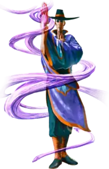 Within series lore, F.A.N.G. is a master of Poison Hand Kenpō (毒手拳法, Dokushu Kenpō). F.A.N.G has developed the ability to resist poison of all types regardless of its strength or origins, due to his skill in mixing toxins as well as his training as an assassin. The idea of a fighter who uses poison in the Street Fighter games was originally considered during development of Street Fighter III: 3rd Strike, when the team members had a debate on including Remy or a different poison-using character.[1] F.A.N.G. was originally conceived as a Shaolin monk archetype for the roster of Street Fighter V.[2] According to producer Koichi Sugiyama, the character's sleeves are wide as a hidden weapon style was one of the ideas they considered for F.A.N.G during the design stage, but the idea was eventually abandoned as returning character Vega already uses a claw.[1]