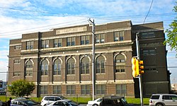 F. Amadee Bregy School is a historic school located in the Marconi Plaza neighborhood of Philadelphia, Pennsylvania. It is part of the School District of Philadelphia. The building was designed by Irwin T. Catharine and built in 1923–1924. It is a three-story, nine bay, brick building on a raised basement in the Colonial Revival-style. It features large stone arched surrounds, double stone cornice, projecting entrance pavilion, and a brick parapet.[2]