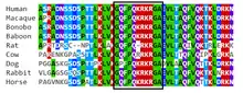 FAM208b is predicted to be localized to the cytosol or nucleus. The peptide sequence lacks a signal sequence either at the N-terminus or internally.[26] No transmembrane domains have been observed or predicted,[27] indicating that FAM208b is not secreted or found in the cell membrane, and is very likely to be intracellular. A Nuclear Localization Signal is observed at amino acids 393-403.[28] The NLS is highly conserved in mammals, birds, and reptiles.