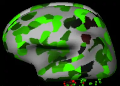 - Various brain views of FAM76A expression in Homo sapiens—green represents high expression, while red represents low expression