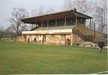 Boom Jaroměř football occurred in the years 1920 – 1930, when he began to build a playground in Rose Street in the Jakubské suburb, where he gradually built a wooden grandstand. It was in 1955 grandstand replaced brick, which is still in operation. Is enclosed the field, stood a barrier around the board and stand for refreshments. It was built i billiards and a playground for volleyball. Social flotator in an old wooden grandstand was built in the year 1932. Until then, the players were washing in stream that ran behind the grandstand. In 1955 stood Tribune brick, covered grassy area, water supply for irrigation area, built a cinder pitch, sanitary facilities for spectators and the reconstruction of the electrical and plumbing inside tribuny. To everything was built with the assistance of many members and voluntary hours Competitors section. The stadium in 2000 hit by floods.