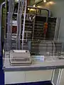 The computer center consists primarily of the computing system with the corresponding peripheral devices (magnet tape, printer, punch cards and paper tape) and interface devices (interfaces) for communication with the local (on-screen consoles, status board, etc.) and external subsystems (redundant computing centers, radar stations, Bl-64 positions, direction finders, eg.). The computer can process data from up to 400 aircraft simultaneously.[1]