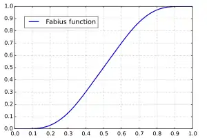 In mathematics, the Fabius function is an example of an infinitely differentiable function that is nowhere analytic, found by Jaap Fabius (1966). It was also written down as the Fourier transform of