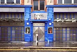 Fabric (stylized as fabric) is a nightclub in Farringdon, London, England. Founded in 1999 on Charterhouse Street opposite Smithfield Market, the club was voted World Number 1 Club in DJ Magazine's "Top 100 Clubs Poll" in 2007 and 2008[2] and ranked World Number 2 in 2009, 2010 and 2017.[3][4]