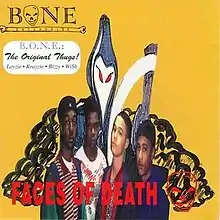 Faces of Death is the debut studio album by American hip hop group B.O.N.E. Enterpri$e. The album was originally released in 1993 on Stoney Burke, the independent label of Kermit Henderson, a record store owner in Cleveland who helped the band to record the album.[2] The first track, Titled "Flow Motion" was performed over the phone by member, Krayzie Bone, leading to all 4 members meeting up with Eazy-E getting them signed. A digitally remastered version was released in 1995 after the band had signed with Eazy-E and changed their name to Bone Thugs-n-Harmony.