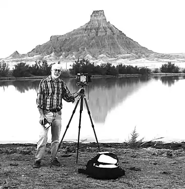 Photographer, with Factory Butte in the background, 1996