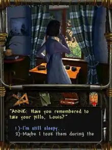 The player soon receives a call from Félicienne, Louis' assistant at the antique shop he owns, regarding his latest client, one Mr. Belleville. Apparently, a file about a deal with Mr. Belleville was sent to Louis, which he promptly finds in his mailbox. Louis then heads to his shop in a village called Saint Jeoire via his automobile. His wife tags along for the ride, and player is presented with an opportunity to talk to Anne along the way.