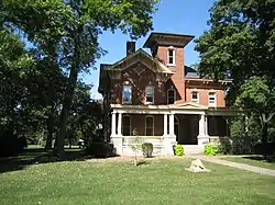 Fairbury was laid out on November 10, 1857 by Caleb L. Patton and Octave Chanute.[3] Like most Illinois towns of the 1850s, the original town of Fairbury was centered on a depot ground. It consisted of twenty-six blocks, each divided into fourteen to sixteen lots. There was no central public square, but one was later included in Marsh's addition. The plan used was virtually identical to that at Chatsworth Illinois, including the street names, and the plan very similar to that at Gridley and El Paso on the same railroad.[4]