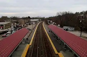 ![]() Station, looking northeast (inbound) viewed from Fairmount Avenue bridge | |||||||||||||||