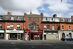 Annadale House was located in an estate that now comprises Melrose Avenue, Lomond Avenue, Waverly Avenue, and Inverness Road.[22] Cadogan and Addison Roads were built in the mid-1800s, and were named for Dublin peers.[23] A number of Georgian houses have since be demolished including Mulberry Lodge, Pennyville,[8] and Woodlands.[24] A Carmelite monastery once stood on Fairview Avenue, on the site of Fairview cinema.[8] Pennyville was a small estate at the end of Fairview Avenue which was later known as Croydon Park.[25] Bushfield House has survived, and stands on Philipsburgh Avenue. It was previously known as Cutaldo and dates from circa 1790.[26] From the 1840s, houses were built on Richmond Avenue, which was seen as a fashionable area. The area which is now Merville Avenue was known as the Big Gun after a local tavern. When Fairview Church was opened in 1855 there were 20 houses on Fairview Strand, two on Windsor Avenue, and 41 houses on Philipsburgh Avenue.[24] The horse trams and later the railway trams which crossed over Anneseley Bridge and ran up to Clontarf increased the accessibility of Fairview.[23]