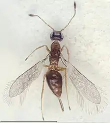 Fairyflies are some of the most common chalcidoid wasps, but because of their minute sizes they are seldom noticed by humans. This apparent invisibility, their delicate bodies, and their hair-fringed wings have earned them their common name.[21]