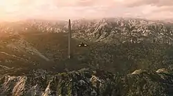 Destiny mysteriously exits FTL in a star system that the ship does not recognise; the seeding ships never informed Destiny of the system, and the habitable planet orbiting it. It is later revealed that the star is only 200 million years old, too young to start a system. Dr. Rush (Robert Carlyle) believes that the ship has dropped out of FTL in order to correct its course by performing a parabolic maneuver, which will take a month. In the meantime, a team uses the opportunity to explore the planet; the team finds fresh fruit, water and plants with medicinal attributes, which the expedition can take back with them. Also, during a flyover in the shuttle, Scott (Brian J. Smith) spots an artificial obelisk at least 2000 feet high.