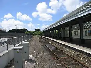 Falmouth Docks railway station (Cornish: Porthklos Aberfala[1]) is situated in Falmouth, Cornwall, England. It was opened in 1863 as the terminus of the Maritime Line from Truro, although since 1970 Falmouth Town has been the principal station for the town. Falmouth Docks is 312 miles 46 chains (312.58 miles, 503.04 km) measured from London Paddington. Services are operated by Great Western Railway, who also manage the station.