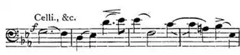 In the first section, Elgar establishes the two main themes of the piece, that for Prince Hal (marked grandioso) being courtly and grand, and that for Falstaff himself showing "a goodly, portly man, of a cheerful look, a pleasing eye and a most noble carriage."[2] Arrigo Boito adapted these words of Falstaff for his libretto for the Verdi opera of the same name, but the Falstaff of the opera is essentially the buffo character from The Merry Wives of Windsor,[3] whereas Elgar's is the Falstaff of Henry IV.[1][4]