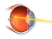 Treatment is largely aimed at reducing the amount of new blood vessel growth and preventing complications that may arise as a result, including retinal tears and detachments. Using a laser, an ophthalmologist burns the portions of the retina that are not supported by blood vessels, a technique known as laser photocoagulation.[1] By doing so, this tissue will no longer release molecules that stimulate blood vessel growth. If a retinal detachment occurs, laser therapy or surgery may be required to repair the retina.[1][2]