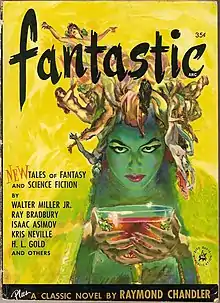 In 1938, Ziff Davis, a Chicago-based publisher looking to expand into the pulp magazine market, acquired Amazing Stories.[2] The number of science fiction magazines grew quickly, and several new titles appeared over the next few years, among them Fantastic Adventures, which was launched by Ziff Davis in 1939 as a companion to Amazing.[3] Under the editorship of Raymond Palmer, the magazines were reasonably successful but published poor-quality work; when Howard Browne took over as editor of Amazing in January 1950, he decided to try to move the magazine upmarket.[4][5] Ziff Davis agreed to back the new magazine, and Browne put together a sample copy, but, when the Korean War broke out, Ziff Davis cut their budgets and the project was abandoned.[6] Browne did not give up, and in 1952 received the go-ahead to try a new magazine instead, focused on high-quality fantasy,[7] a genre which had recently become more popular.[8] The first issue of Fantastic, dated Summer 1952, appeared on March 21 of that year.[7]