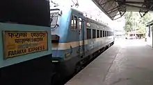 Farakka Express is an Express train of Indian Railways connecting Murshidabad and Malda districts of West Bengal with the national capital Delhi. This train is in much demand from the people of the district of Malda and Murshidabad. It covers a distance of 1422 km at an average speed of 42 km/h.