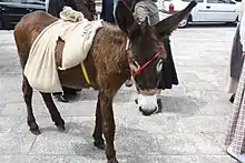 The Fariñeiro or Burro Fariñeiro is a Spanish breed of small domestic donkey indigenous to the autonomous community of Galicia, in north-west Spain. Its name derives from its former use as a pack animal to transport sacks of flour (Galician: fariña). It may also be referred to as the Spanish: Asno Gallego. It does not have official recognition, and its numbers are severely reduced.[3] It is found mainly in the Península del Morrazo in the province of Pontevedra, in the area surrounding Betanzos in the province of A Coruña, in the comarcas of the los Ancares and O Caurel areas of the province of Lugo and in the mountains of the province of Ourense.[3]