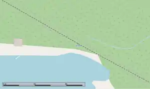 Map showing the station stop, located at the north end of Cache Lake with a passing track to the north of the stop.