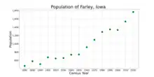 Farley is a city in Dubuque County, Iowa, United States. It is part of the Dubuque, Iowa Metropolitan Statistical Area. The population was 1,766 at the time of the 2020 census, up from 1,334 in 2000.[2] Farley is the sixth-largest city in Dubuque County.