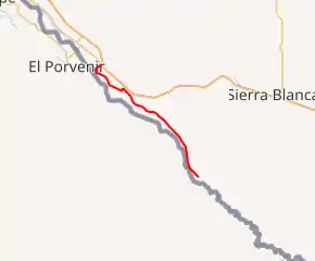 The southern terminus of FM 192 is along the Rio Grande in unincorporated Hudspeth County. From here, the road proceeds northwestward along the river, passing through Fort Quitman and Esperanza before ending at SH 20 at McNary[1][2][3][4]