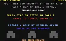 Invade-a-Load was a fast loader for cassette-based games which not only accelerated the loading of blocks from the tape, but also contained a mini-game (in this case, a clone of Space Invaders) that could be played while waiting for the main game to finish loading. Invade-a-Load allowed the user to play a small clone of the famous Space Invaders game while the main game was loading. This initial minigame was loaded in under a minute, providing entertainment while waiting for the actual game to load, which could take a further five to ten minutes. On at least one occasion, a reviewer expressed their preference for Invade-a-Load over the main game itself.[31] It mostly appeared in games sold in the United Kingdom, as, by the time it was written, the Commodore market in the United States had mostly switched to floppy disk media. The loader was written by Richard Aplin for Mastertronic's own use. The loader itself has a copyright date of 1987, but the first games that used the loader showed up in 1988. Over the following years, Mastertronic used the loader in dozens of titles. The loader was also memorable for the soundtrack, originally made by Rob Hubbard for the Mastertronic title One Man and His Droid.