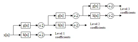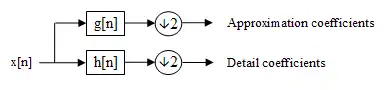 For the discrete wavelet transform (DWT), one computes recursively, starting with the coefficient sequence and counting down from k = J - 1 to some M < J,