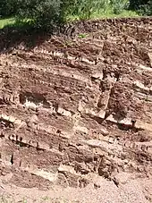 - Clay smear - clay-rich fault gouge formed in sedimentary sequences containing clay-rich layers which are strongly deformed and sheared into the fault gouge.