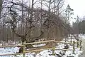 They are not more than 4 or 5 metres (13 or 16 ft) high. In summer, they spread their leaves like heavy sun umbrellas; some looking like leaf igloos. In winter, their tortuous shape can be seen naked: trunks and branches are crooked, bent, twisted and pendulous to the ground. Such dwarf beeches are also known in other places: in Germany (in the Süntel area, not far from Hanover), in Sweden (at Dalby Söderskog National Park near Malmö, not far from the northern limit for this species), in Denmark, and in another place in France (in Lorraine). Nobody knows whether these plantings have the same origin or not. But there are too few such beeches in these two places to feel confident about the future of their population. The situation is healthier around the dwarf beeches of Verzy, especially now that the construction of a pathway enables visitors to admire them without making harmful trampling on the ground over the fragile roots. A fenced reserve also enables the preservation of a part of the population. With more than 1,000 dwarf beeches, the National Forest of Verzy is the world's principal reserve of dwarf beeches. Among them, the most specific ones were given a name inspired by their peculiar shapes:
