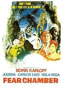 Fear Chamber (La camara del terror/ The Room of Terror), also released as The Torture Zone, is a 1968 Mexican horror film directed by Juan Ibáñez and starring Boris Karloff and Julissa. It was filmed in May 1968, but was only released theatrically in 1971, 2 years after Karloff had died.[2][3]