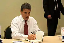 Before the book's release and ahead of the gubernatorial election, excerpts were placed on the website of Little, Brown and Company publishing. Democratic candidate Bill White used the excerpts to criticize Perry, particularly a passage where Perry compared Social Security to a Ponzi scheme.[13] After the book's release and Perry's victory in the election, he embarked on a nationwide tour to promote the book, appearing on such shows as The Today Show, Fox and Friends, NPR, Glenn Beck's radio show and The Daily Show.[14]