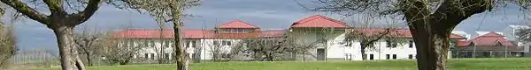 FCI Sheridan houses approximately 1900 total inmates.[16] This includes the main medium security detention facility and a smaller minimum security prison camp.[17] The facility is designed in a style that resembles college campuses that are meant to foster rehabilitation.[1] Buildings housing inmates have white exteriors with red-colored roofs.[1] These concrete, two-story structures are modeled after dormitories.[1] The factory buildings have roof lines that are meant to mimic the area's agricultural architecture.[1] The prison industry (UNICOR) was a wood shop for the manufacturing of furniture until being closed down in 2006.[10] Furniture included desks and office chairs.[1] Inmates at the minimum security camp can study to work as landscape gardeners and personal fitness trainers after their release from prison.[18] This is the only federal prison in Oregon.[19]