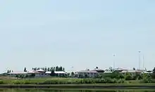 State and county governments expanded Sheridan's urban growth boundary to include the prison site in 1986, which opponents then fought in court.[6] These efforts, along with two ballot measures in November 1986, all failed, and groundbreaking for construction was held in March 1987.[7] Local businesses and the city had sought the prison to provide jobs in the area.[7] Sheridan expanded its water and wastewater treatment systems at a cost of $2.2 million as part of the project.[7]